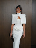 Welcoming the Ashtyn Cape, the perfect embodiment of modern elegance and quiet luxury. Featuring a high neckline with a structured silhouette, Ashtyn embraces feminine allure and bold charm. Wear perfectly with our matching Ashtyn Dress.