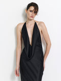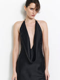 Astoria is pure elegance in motion. Crafted in our luxurious satin, Astoria features a beautiful deep cowl neckline that falls into a clean, floor-length silhouette. The embodiment of restraint, Astoria is cut with a low back and adjustable straps to tie the neckline. A gown for grand receptions, intimate weddings, or formal moments where timelessness is key.