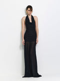 A gown that embodies quiet opulence, the Cleo drapes the figure in mesh with a sculptural precision. Featuring a slender bodice that flows seamlessly into a floor-sweeping skirt, Cleo is an ode to modern minimalism. Cleo lends itself to evenings of art openings, spring weddings, and moments that call for understated grandeur.