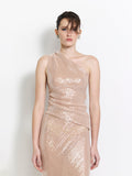 Defined by sculpted glamour and contemporary femininity, we present the Harley Top. Crafted in shimmering blush sequins, this statement piece features an asymmetrical one-shoulder neckline that highlights the collarbone, with an asymmetrical hem for movement and effortless poise. Perfect for pairing together with our matching Harley Skirt for luminous sophistication to evening celebrations. Alternatively, mix and match with your favourite denim for your elevated day-to-night looks.