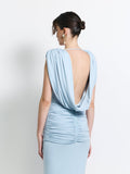 Architectural in line yet softened by our signature stretch jersey, the Steele Gown is an ode to modern dressing. Featuring a fitted bodice flows seamlessly into a sleek skirt, balancing strength with elegance. Cut with a beautiful subtle cowl that blends beautifully into a deep low back. Detailed with delicate ruching across the stomach for added comfort and support. In soft Aspen, Steele is made for formal receptions, red-carpet evenings, or quiet celebrations of presence.