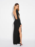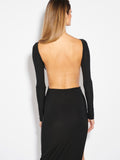 The Iysabel Gown is truly as backless as it gets. Made from doubled stretch jersey it clings to the body and holds on tight with s strategic leg split for extra edge. It's all about cut and the cut that makes a statement; if you're looking to stand out the Iysabel Gown is your go to.
