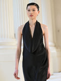Astoria is pure elegance in motion. Crafted in our luxurious satin, Astoria features a beautiful deep cowl neckline that falls into a clean, floor-length silhouette. The embodiment of restraint, Astoria is cut with a low back and adjustable straps to tie the neckline. A gown for grand receptions, intimate weddings, or formal moments where timelessness is key.