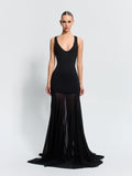 The Odessa Gown is elegance distilled. Sleek crepe lines embrace the frame before falling into a clean, elongated skirt. Odessa speaks to evenings of quiet confidence — galas, formal celebrations, or private dinners where simplicity becomes its own luxury. Bodice is made from our signature stretch crepe with detailed boning throughout. Skirt is crafted from our signature mesh for sheer contrast.