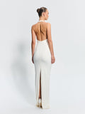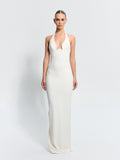 Celestial in spirit, the Starla Gown features a beautifully sculpted neckline that falls seamlessly into a low back gown. Crafted in crepe for the perfect figure hugging silhouette, Starla is a piece of timeless allure. Exuding modern mystery, Starla is perfect for weddings, evening receptions, or any moment where elegance must linger.