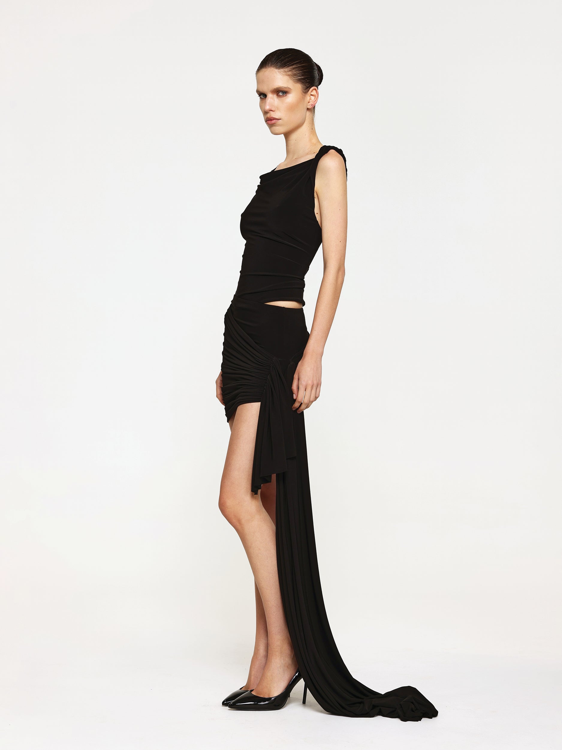 A soft yet structured top for all occasions, featuring soft gathering and ruching through the bodice with a twist detail along the straps. Our Ella Top is perfect worn with our Maisie Mini Skirt, or pair together with a pair of jeans and kitten heels for a dressy night out. Strap can be worn off the shoulder. Made with our signature soft jersey fabric.
