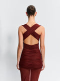 Introducing the Layla Dress, the perfect embodiment of sophisticated allure with it's flattering ruched silhouette and halter neckline. Intricately detailed with a captivating open back, it flows gracefully into a maxi length, featuring delicate sheer panels for added intrigue and centred ruching down the waistline. This versatile piece effortlessly merges modern design with timeless elegance.